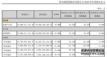 2020年陽光城的利潤率為6.68%,與上一年的7%相比,又下降了0.32個百分點。毛利率為18.88%,同比下跌了6.66%。