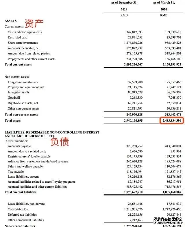 一季報(bào)顯示,截至3月31日趣頭條總資產(chǎn)為24.84億元,總負(fù)債為30.97億元,凈資產(chǎn)為負(fù)6億元,上一季度期末則是負(fù)2億元。如果進(jìn)一步扣掉5億元可贖回的非控制股東權(quán)益(redeemable non-controllinginterests),目前趣頭條的股東所有者權(quán)益為負(fù)11億元。
