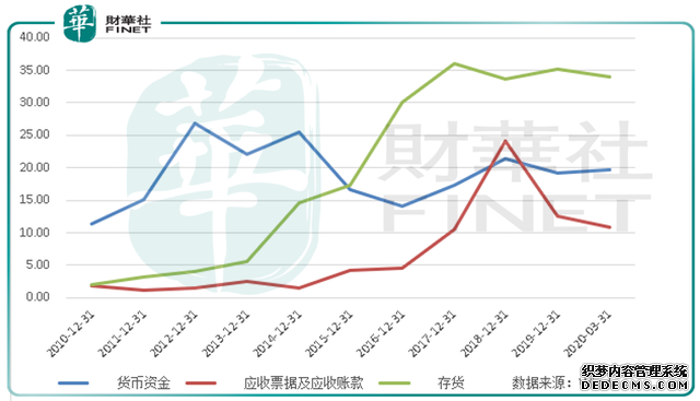 Wind顯示,公司2017年公司存貨達(dá)36.07億元已經(jīng)顯露危機(jī), 2018年為33.67億元,2019年公司存貨波動(dòng)上升達(dá)35.22億元。