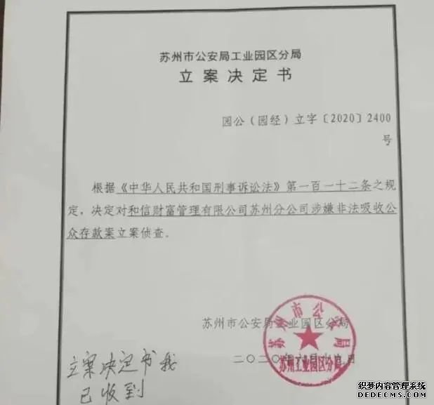 此外,報(bào)道還指出,和信貸線下財(cái)富端平臺(tái)和信財(cái)富也被立案調(diào)查,蘇州市公安局工業(yè)園區(qū)分局出具的立案決定書顯示,“對(duì)和信財(cái)富管理有限公司蘇州分公司涉嫌非法吸收公眾存款案立案?jìng)刹?rdquo;。