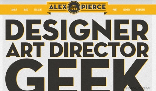 Alex Pierce有一個很棒的專注于排版布局的網站,你可以通過CSS3的屬性看到富文本效果。另外這個網站很容易被導航以及許多其他頁面的元素顯示的也是超大的。