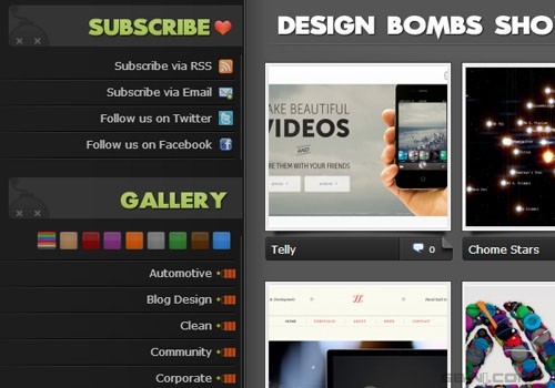 紋理效果同樣在另一個垂直布局上出現,例如CSS畫廊Design Bombs。
