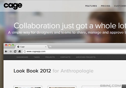 我想為Cage App設計的網站或許是這篇文章中列出的例子中最棒的一個。他們利用單頁布局通過水平布局鮮明的展現出內容。但是你還會注意到頁面的頂端有一個模糊的背景圖片效果。