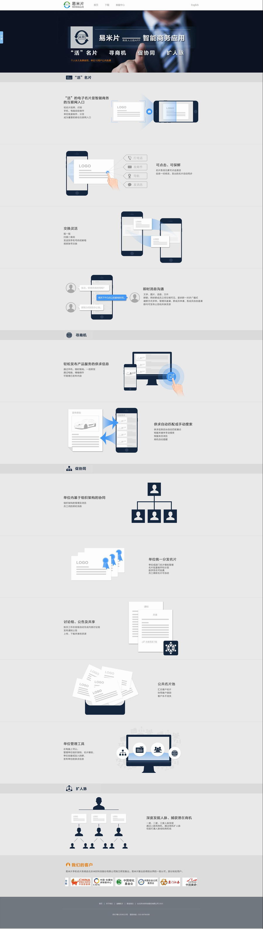 易米片是一個基于手機(jī)電子名片進(jìn)行商務(wù)社交的移動互聯(lián)網(wǎng)平臺,用來進(jìn)行電子名片的制作、交換、存儲、查找、管理,以及在由電子名片形成的社交圈中進(jìn)行在線聊天、商務(wù)社交及拓展商機(jī)。