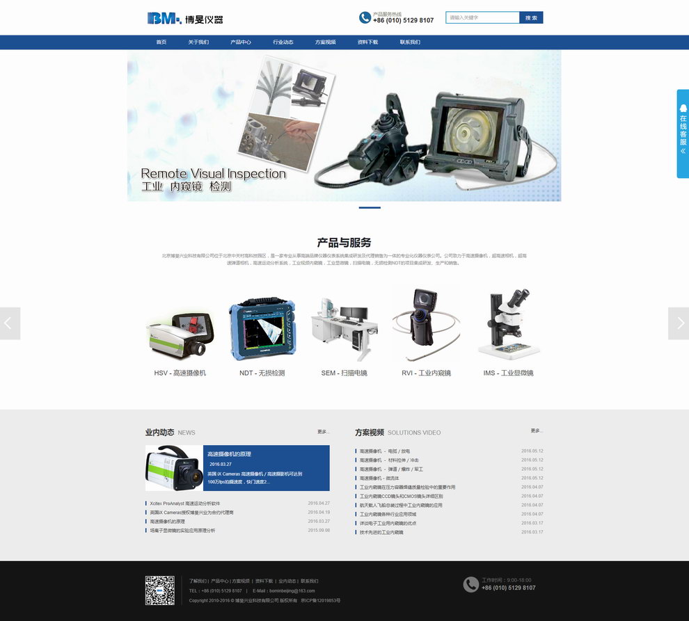 北京博旻興業(yè)科技有限公司位于北京中關(guān)村高科技園區(qū),是一家專業(yè)從事高端品牌儀器儀表系統(tǒng)集成研發(fā)及代理銷售為一體的專業(yè)化儀器儀表公司。公司致力于高速攝像機(jī),超高速相機(jī),超高速彈道相機(jī),高速運(yùn)動(dòng)分析系統(tǒng),工業(yè)視頻內(nèi)窺鏡,工業(yè)顯微鏡,掃描電鏡,無損檢測(cè)NDT的項(xiàng)目集成研發(fā)、生產(chǎn)和銷售。