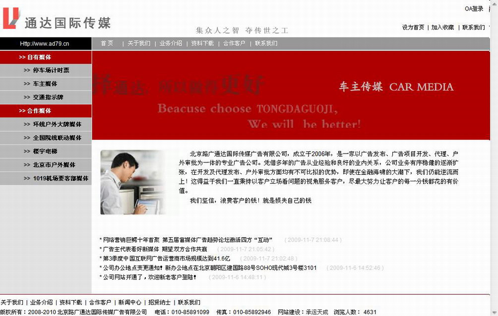 北京路廣通達國際傳媒廣告有限公司網(wǎng)站和企業(yè)內(nèi)部OA系統(tǒng)日前通過客戶驗收,正式投入使用。