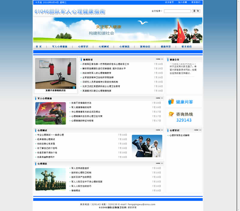 總參某部隊心理健康指南網(wǎng)站交付使用。