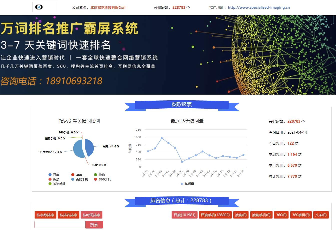 北京富爾科技采用海量詞推廣方式推廣一周,上詞228783個,網(wǎng)站流量顯著增加,效果突出。