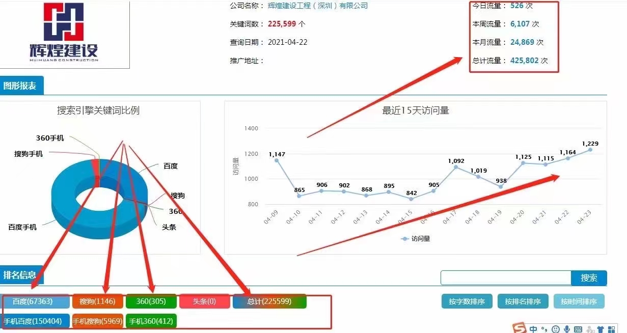 該客戶沒有自己的官網(wǎng),直接使用的是我們系統(tǒng)的模板網(wǎng)站,流量同樣也是一流的。而且客戶推廣的主詞也都上首頁(yè)了,而且是霸屏展示。